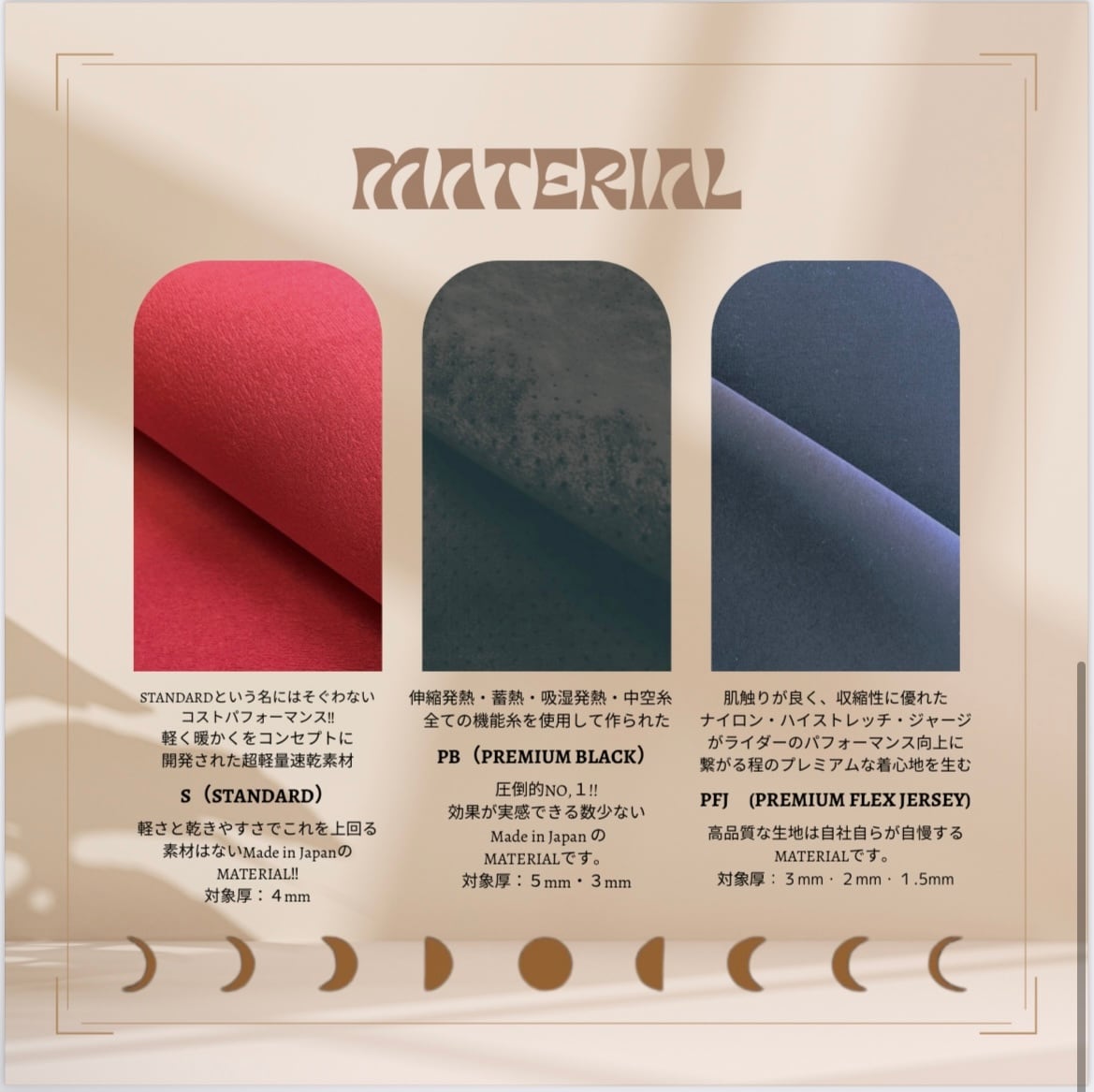 軽く暖かくをコンセプトに開発された超軽量速乾素材 S (STANDARD)